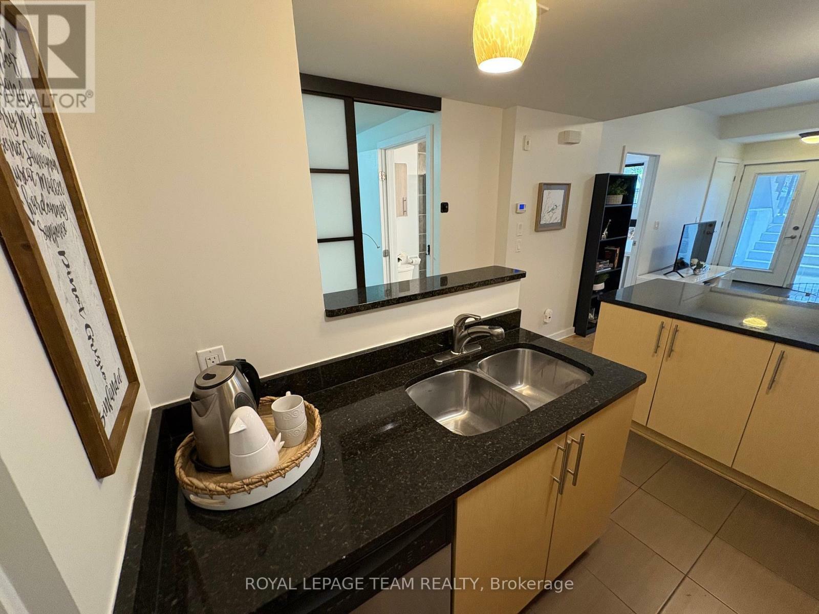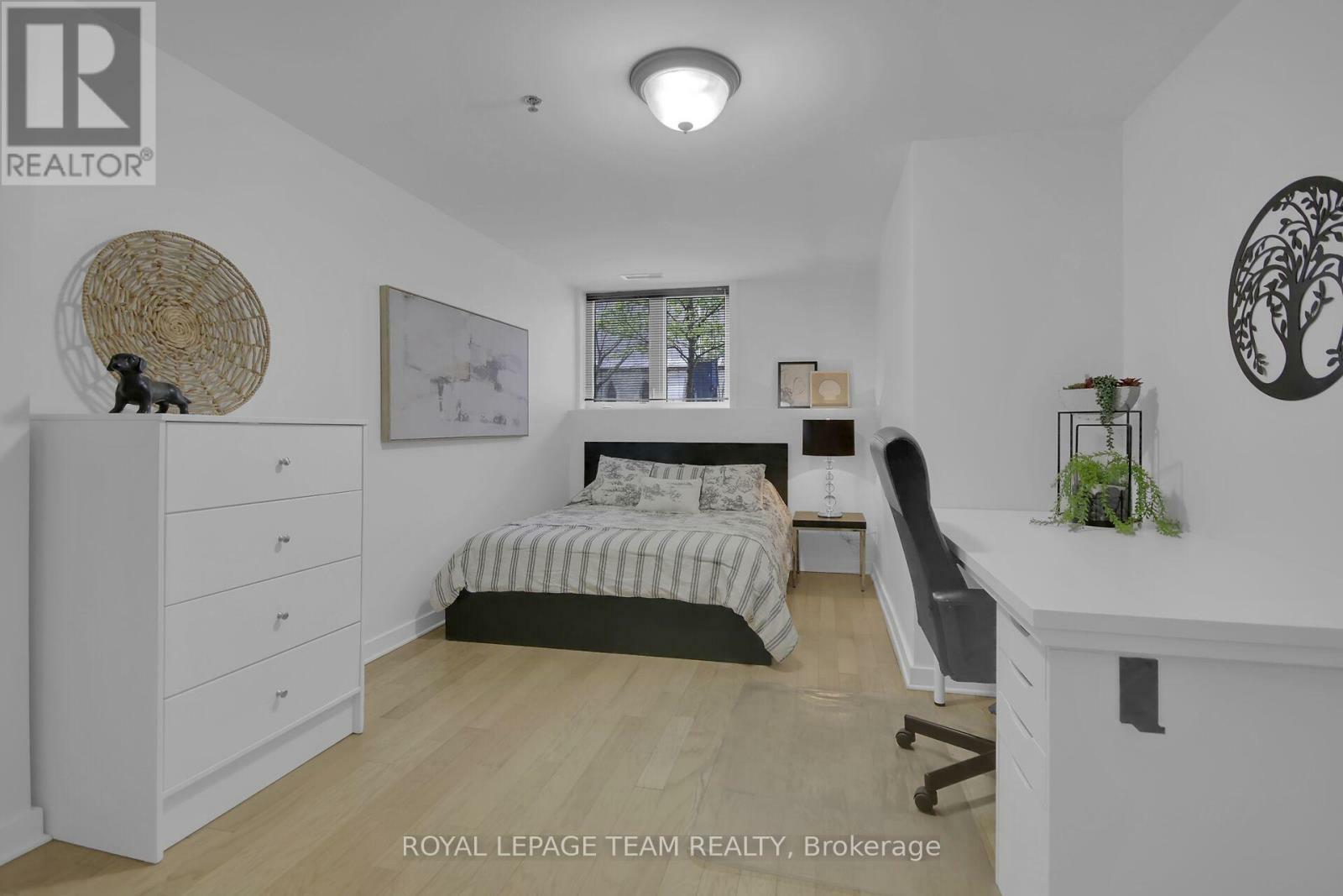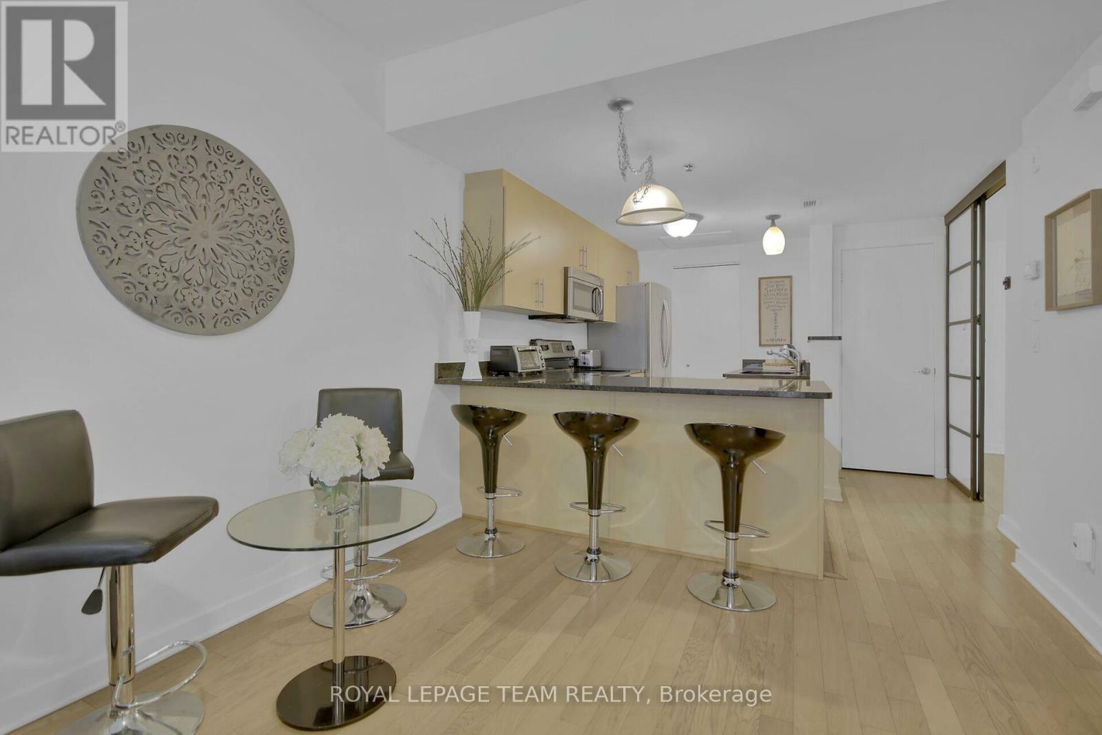 Such an amazing opportunity. You will love this contemporary property providing 1 bedroom + full den. Absolutely welcoming w private exterior gated entrance. It features a spacious bedroom including a good size double door closet & a 4 piece ensuite bathroom offering a vanity with granite countertop. In addition the generous size fully enclosed private den provides a closet & 3 piece ensuite bathroom. The comfortable open concept living spaces features the living room adjacent to a nook area which can host an office desk (identified as "other" for description & size). The kitchen showcases beautiful granite countertops & stainless steel appliances, it also includes a peninsula breakfast bar area to host 3 to 4 seats. The hallway storage is very practical to use for a food pantry and/or your linens. Alongside the living room is the dining/eat in area which is also spacious for a larger table. Very convenient & desirable in unit laundry room. Located within walking distance to wonderful amenities such as transit, a variety of amazing shops, the Rideau Center Mall, the Byward Market, the Parliament, the famous Rideau Canal, the University of Ottawa & so much more. Great location to live in or easy to rent if this is your plan as an investor. Also good value for students and professionals. The shared rooftop with seating & tables is ideal to enjoy the views, a BBQ & maybe the fireworks during the festivities. Central air conditioning for much desired comfort. Freshly painted. Beautiful built in newly installed adjustable blinds in the front & side front door glass window for privacy. The buyers could contact the city for a potential street parking permit at a cost depending on availability. Note on pictures the den is currently used as a bedroom. Elevator to access the shared rooftop area & locker area through the garage. Electric car charging staging station nearby. Take a moment to review the link for additional pictures and panorama videos. (id:52884)