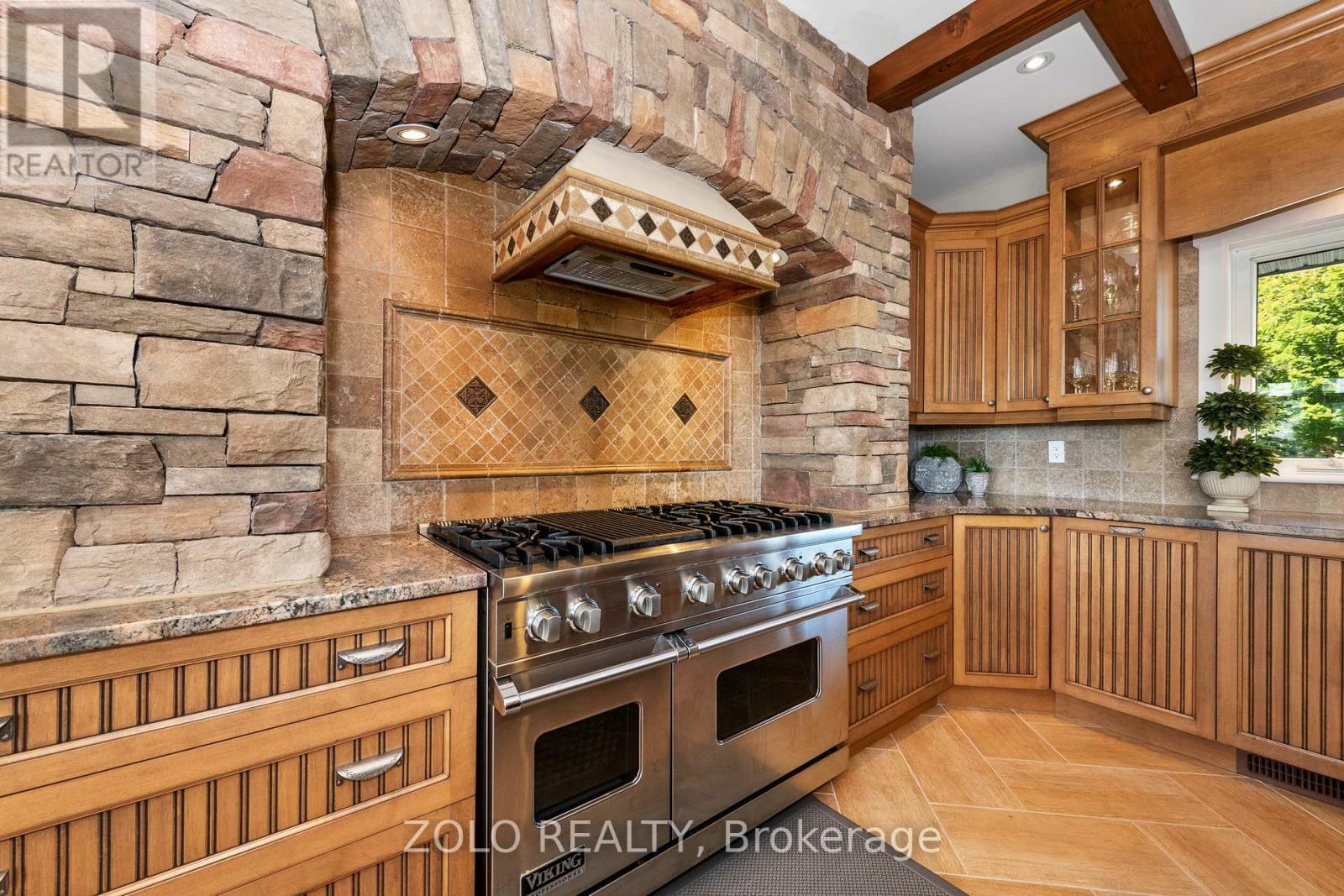 Nestled in a peaceful setting, this beautiful home effortlessly combines warmth and elegance, making it ideal for both single families and multi-generational living. Upon entering, you’ll be greeted by stone wall accents and impressive wood-vaulted cathedral ceilings that create an inviting atmosphere. At the heart of the home is the great room, featuring floor-to-ceiling windows that frame stunning views of the surrounding countryside. This versatile space is perfect for cozy evenings by the fireplace or lively gatherings, with an advanced home audio system that includes speakers throughout the house and outdoor areas. Enjoy classical music in the great room while rocking out on the veranda; the system allows for different input/output options in each space. The formal dining room stands out with three walls of windows, allowing natural light to flood the space and offering captivating views of the outdoors. Its an ideal environment for families to come together over meals and foster lasting bonds. Adjacent to the dining area, the gourmet kitchen is a delight, equipped with Viking Pro appliances and generous counter space, making cooking enjoyable for everyone. The family eating area opens seamlessly to a deck, perfect for outdoor dining and entertaining during warm months. Designed for flexibility, this home includes multiple bedrooms, ensuites, and comfortable sitting rooms. And a dog washing station for the family pet! The second-level lounge and lower-level gym can easily be converted into two extra bedrooms, accommodating single families or multi-generational setups. In this exceptional property, the thoughtful layout supports various living arrangements, creating a welcoming environment where families can create cherished memories. Whether you are a single family or a multi-generational group, this home is a perfect fit, blending comfort, elegance, and practicality. (id:52884)